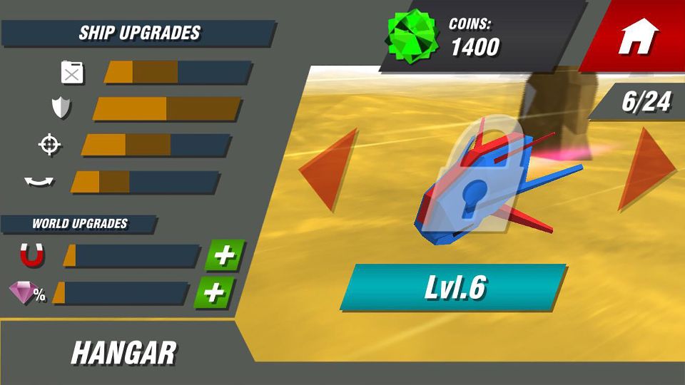 La premisa del juego comienza siendo un juego de disparos infinitos, con la cual se puede poner a prueba tanto los reflejos como la capacidad de suministrar nuestros recursos para poder llegar mucho más lejos y poder así desbloquear las diferentes y divertidas naves que el juego tiene preparado para ti.
